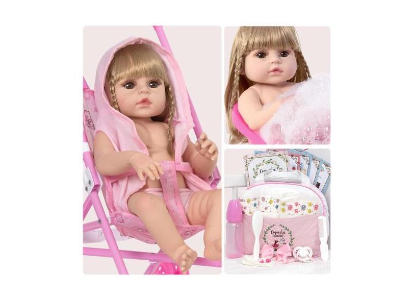 Boneca Reborn Realista 100% Silicone Loira Enxoval Carrinho - Cegonha