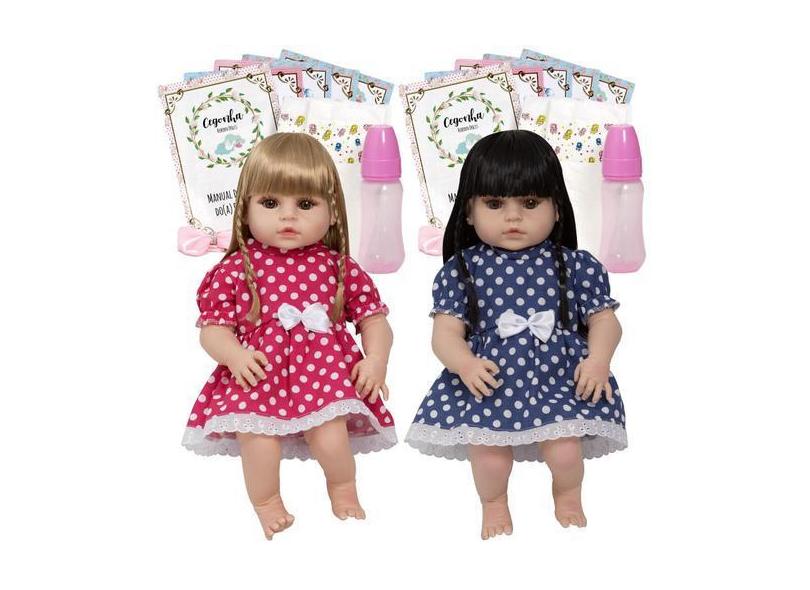 Boneca Reborn Realista Gêmeas Loira Morena + Kit Acessórios - Cegonha