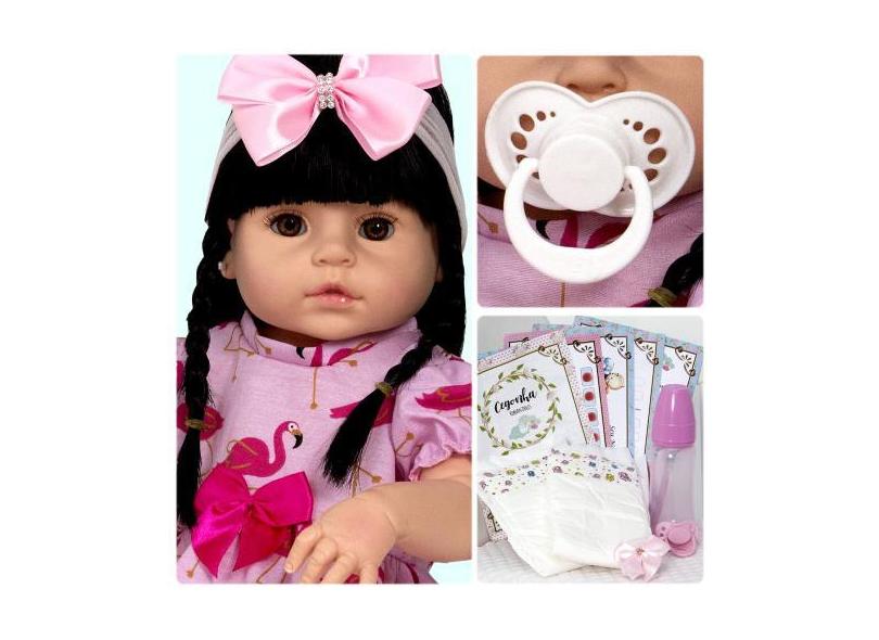 Boneca Reborn Realista Julia Morena Cabelo Longo 13 Itens - Cegonha Re