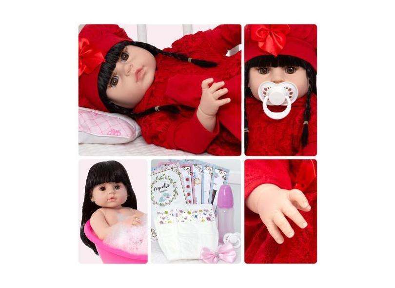 Boneca Reborn Realista Morena Olho Castanho Com Kit 13 Itens - Cegonha
