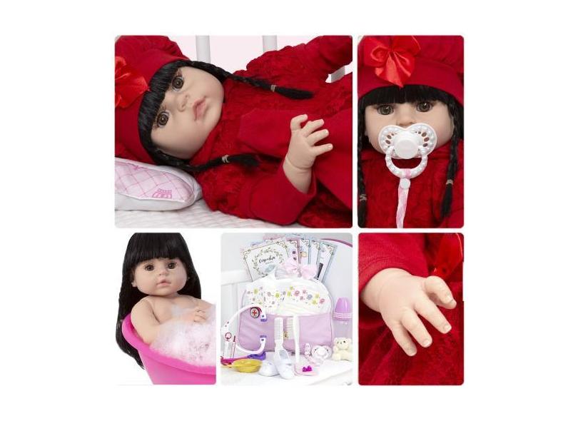 Boneca Reborn Realista Morena Vestido Vermelho Enxoval Bolsa - Cegonha