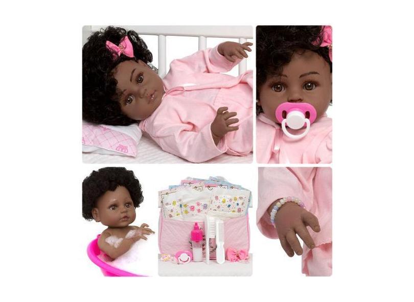 Boneca Reborn Realista Negra Cabelo Cacheado Linda Completa - Cegonha