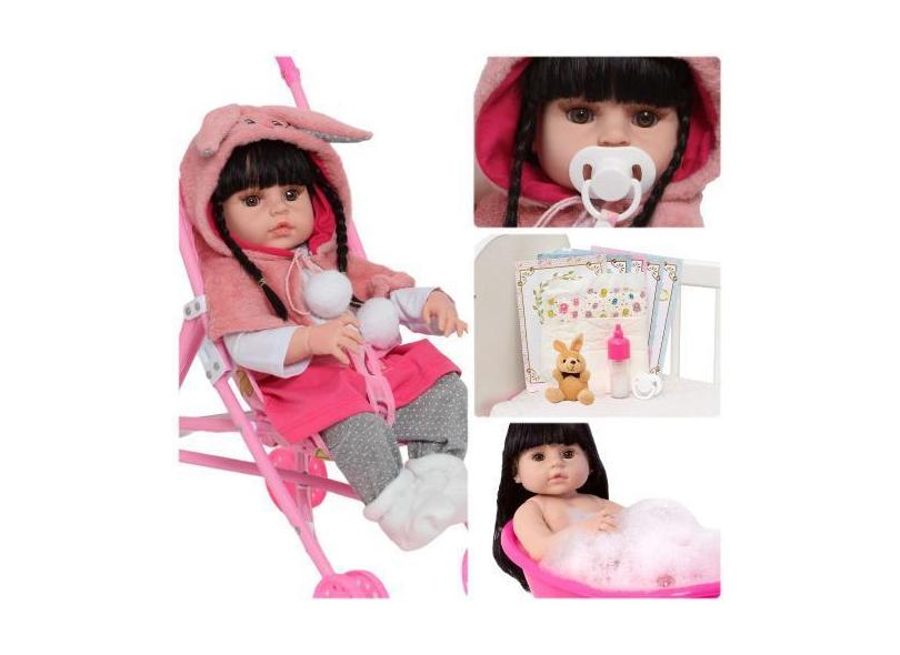 Boneca Reborn Recém Nascida Coelhinha Morena Com Carrinho - Cegonha Re