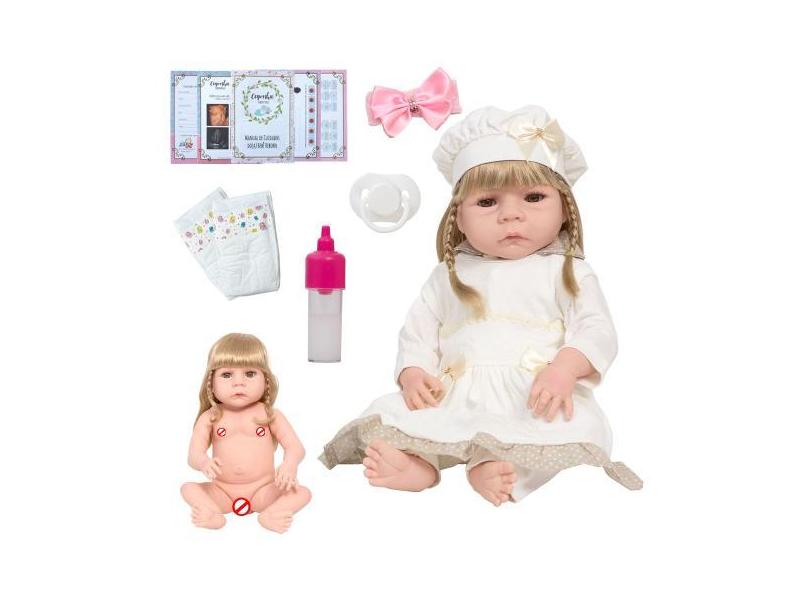O menor preço encontrado no Brasil para Boneca Reborn Recém Nascida Corpo De Vinil + Kit 13 Itens - Cegonha Re atualmente é R$ 185,67.