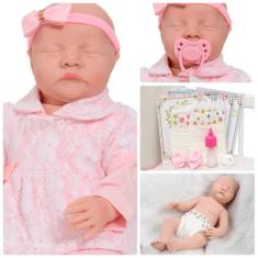 Boneca Reborn Recém Nascida Lívia Pode Banho Kit Acessórios - Cegonha
