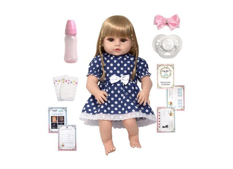 O menor preço encontrado no Brasil para Boneca Reborn Recem Nascida Menina Loira Fofa Kit Acessórios - Cegonha atualmente é R$ 135,99.