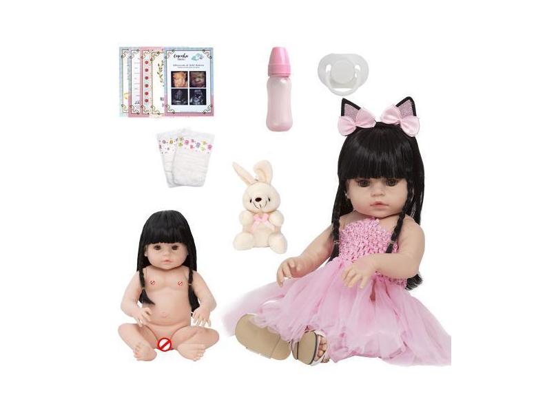 Boneca Reborn Recém Nascida Morena Com Pelúcia Kit 14 Itens - Cegonha
