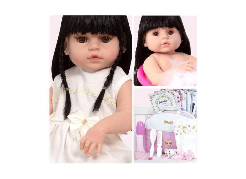 Boneca Reborn Recem Nascida Morena Linda 46cm Vários Itens - Cegonha R