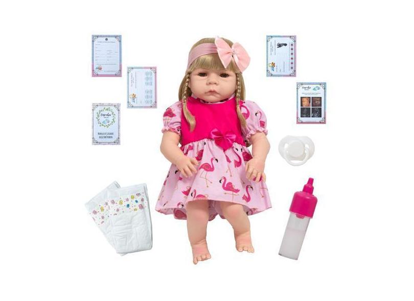 Boneca Tipo Reborn Loira Cabelo Comprido Pode Molhar + Itens - Cegonha