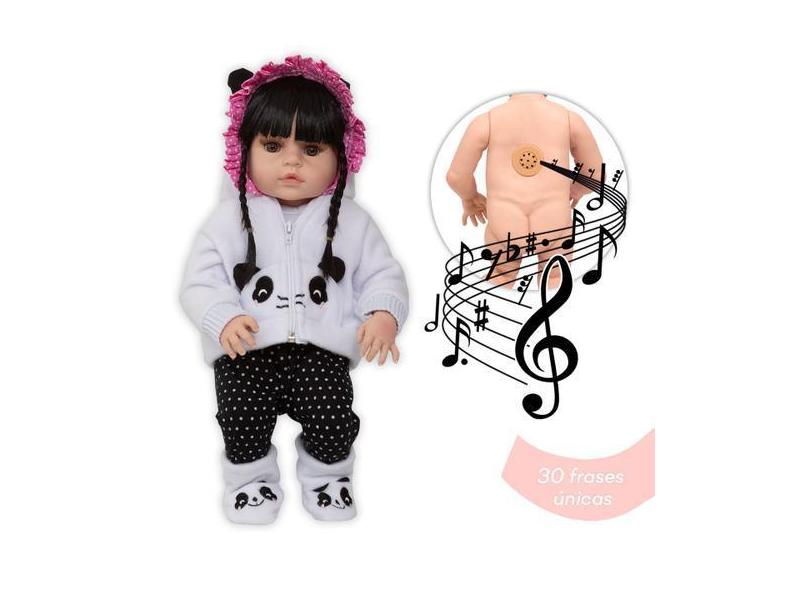 Boneca Tipo Reborn Morena Que Fala 46cm Roupa Panda Itens - Cegonha Re