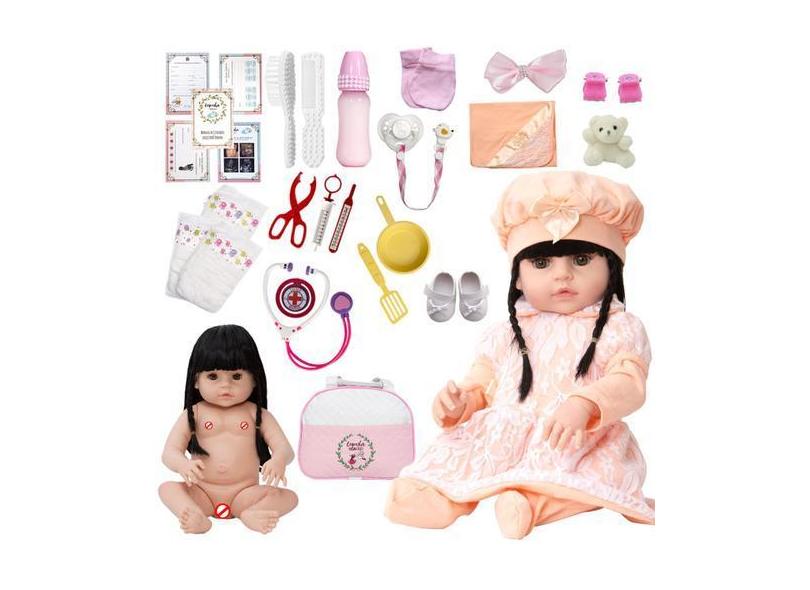 Boneca Tipo Reborn Morena Silicone Enxoval Completo 24 Itens - Cegonha