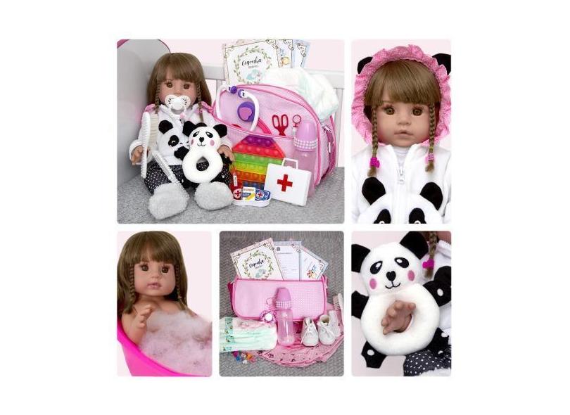 Boneca Tipo Reborn Silicone Pandinha Linda Princesa 19 Itens - Cegonha