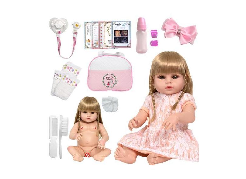 Boneca Tipo Reborn Valentina Loira 46cm Linda Vários Itens - Cegonha R