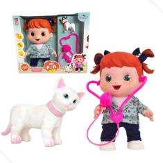 Boneca Veterinária Grande My Fun + Pet Gato Cachorro Adijomar