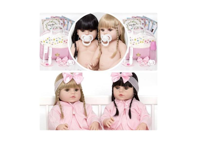 Bonecas Bebe Reborn Gêmeas Meninas Lindas Pagão Rosa Enxoval - Cegonha
