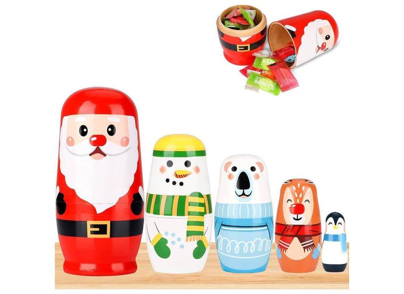 Bonecas de nidificação de Natal, 5Pcs Madeira russa Matryoshka Doll