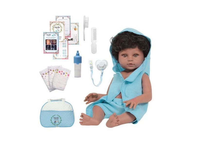 O menor preço encontrado no Brasil para Boneco Bebê Reborn Negro Príncipe 46cm Com Vários Itens - Cegonha Rebo atualmente é R$ 240,71.