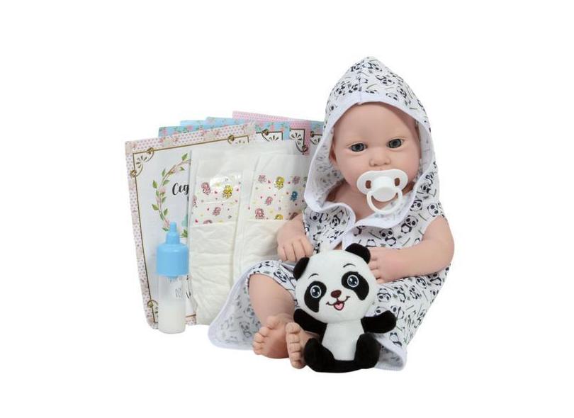 Boneco Bebê Reborn Realista Careca 43cm Roupão Pandinha - Cegonha Rebo