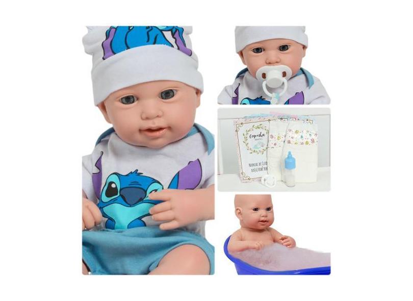 Boneco Bebê Reborn Siliconado Articulado C/ Conjunto Stitch - Cegonha