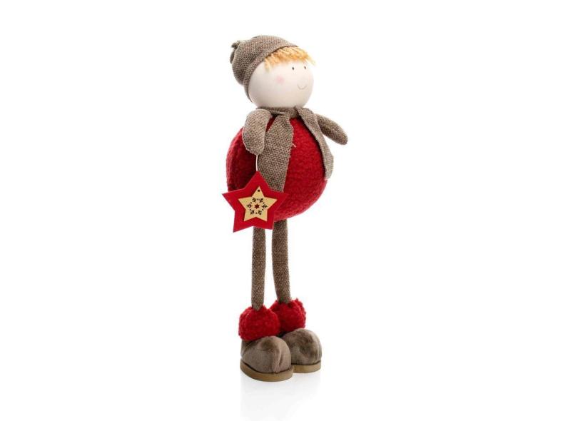Boneco de Natal Menino em Pé Vermelho e Marrom 40 cm - D`Rossi