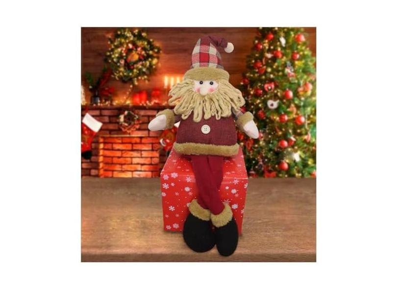 Boneco De Natal Papai Noel Sentado Perna Mole Em Tecido