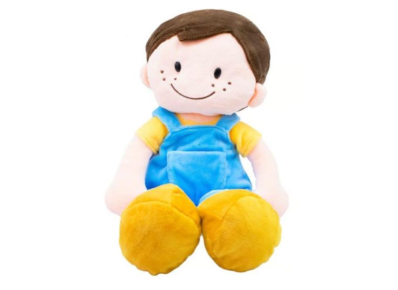 Boneco De Pelúcia Sorriso Feliz Roupa Azul 29 Cm