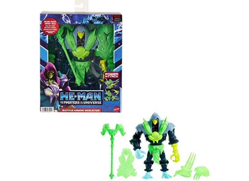 Boneco grande de esqueleto de luxo He-Man and The Masters of the Universe com movimento de ataque poderoso e 4 acessórios inspirados na série animada