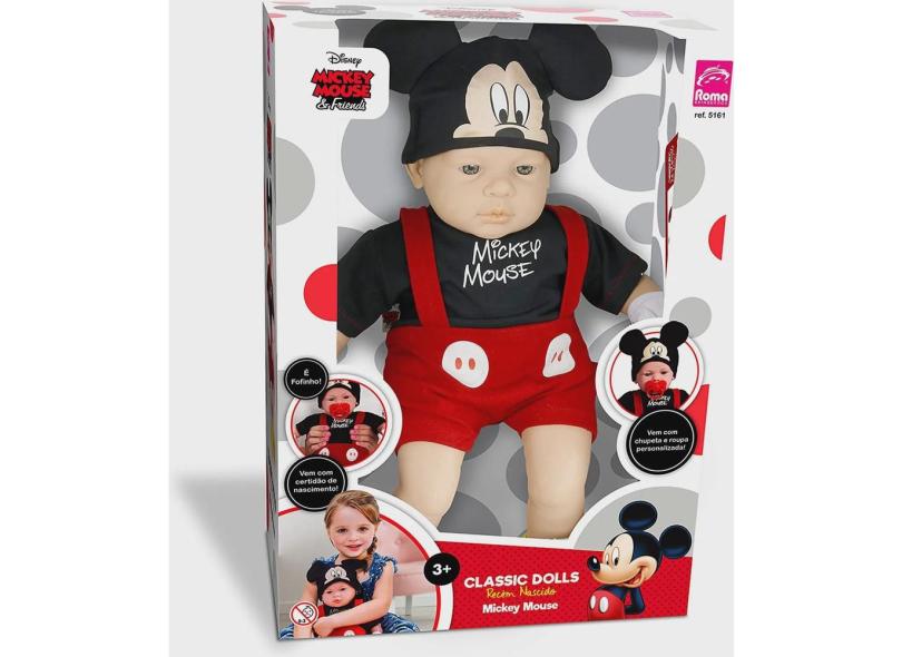 Boneco Mickey Mouse Coleção Classic Dols Recém Nascido Roma Brinquedos
