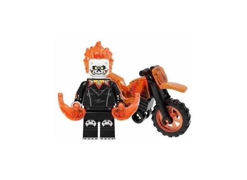 Boneco Moto Blocos Montar Motoqueiro Fantasma Pantera Negra - Mega Blo