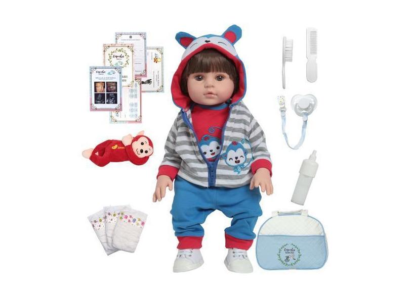 O menor preço encontrado no Brasil para Boneco Reborn Arthur Cabelo Castanho Macaqunho + Bolsa - Cegonha Rebor atualmente é R$ 262,21.