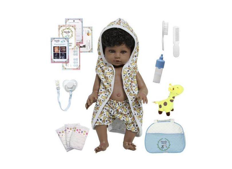 Boneco Reborn Bebê Menino 100% Vinil Bolsa Roupão Girafa - Cegonha Reb