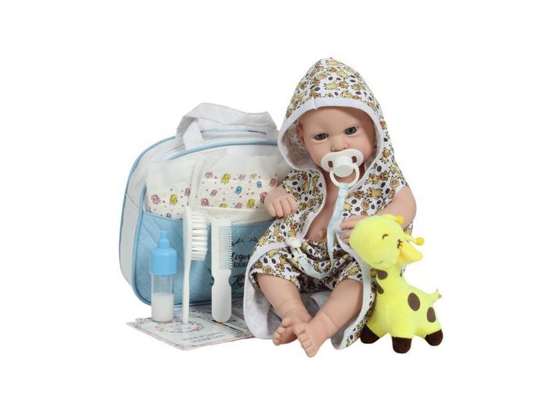 Boneco Reborn Bebê Menino Com Saída de Banho Girafa + Bolsa - Cegonha