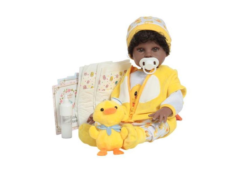 Boneco Reborn Bebê Menino Negro Roupa Patinho + Acessórios - Cegonha R