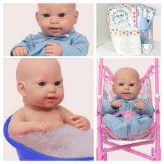 Boneco Reborn Com Carrinho Recém Nascido Luca Corpo De Vinil - Cegonha