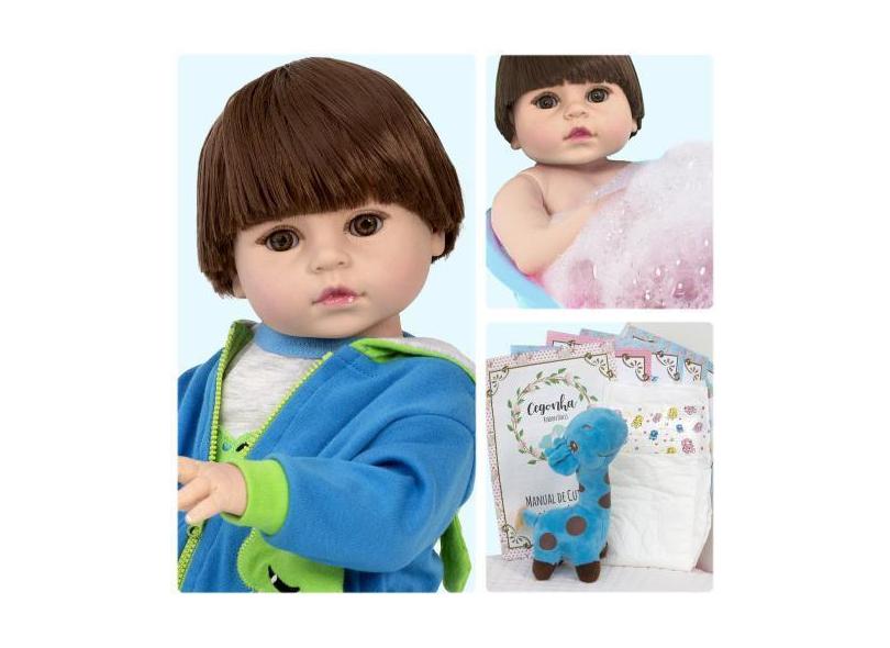 O menor preço encontrado no Brasil para Boneco Reborn Masculino Sapinho Recem Nascido + Kit 9 Itens - Cegonha atualmente é R$ 169,33.