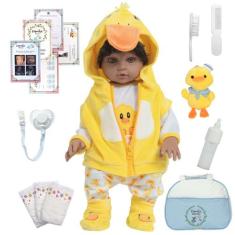 Boneco Reborn Menino Realista Negro Patinho Kit Acessórios - Cegonha R