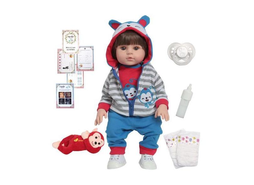 O menor preço encontrado no Brasil para Boneco Tipo Reborn 100% Vinil Pode Dar Banho Roupa Macaco - Cegonha Re atualmente é R$ 247,59.