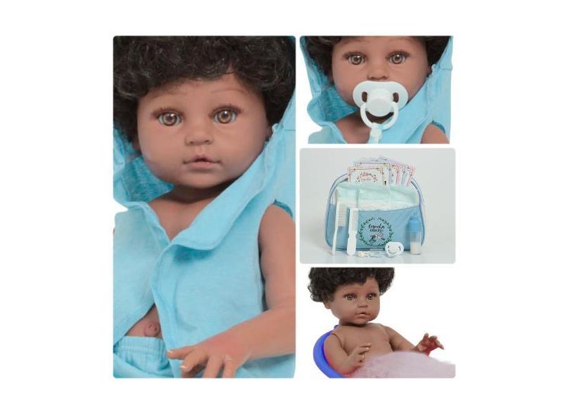 O menor preço encontrado no Brasil para Boneco Tipo Reborn Recém Nascido Negro Com Saída de Banho - Cegonha Re atualmente é R$ 240,71.