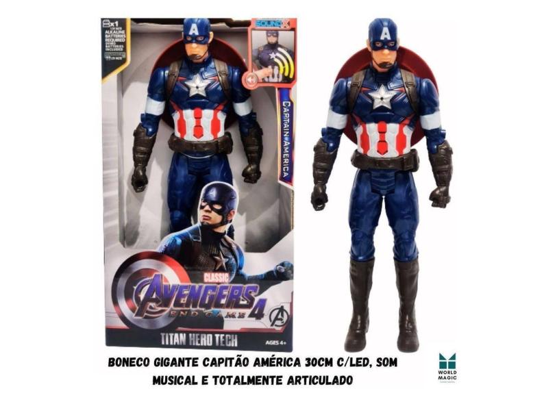 Boneco Vingador Avengers Capitão América 30 Cm C/ Som E Lu