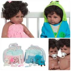 Bonecos Reborn Gêmeos Recém Nascidos Pode Banho Corpo VInil - Cegonha