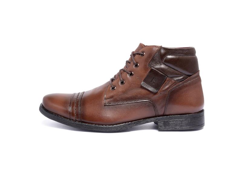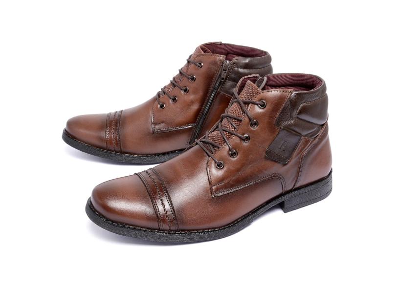 Bota Botina Coturno Ferrile em Couro Bico Redondo Zíper Café e Marrom masculino