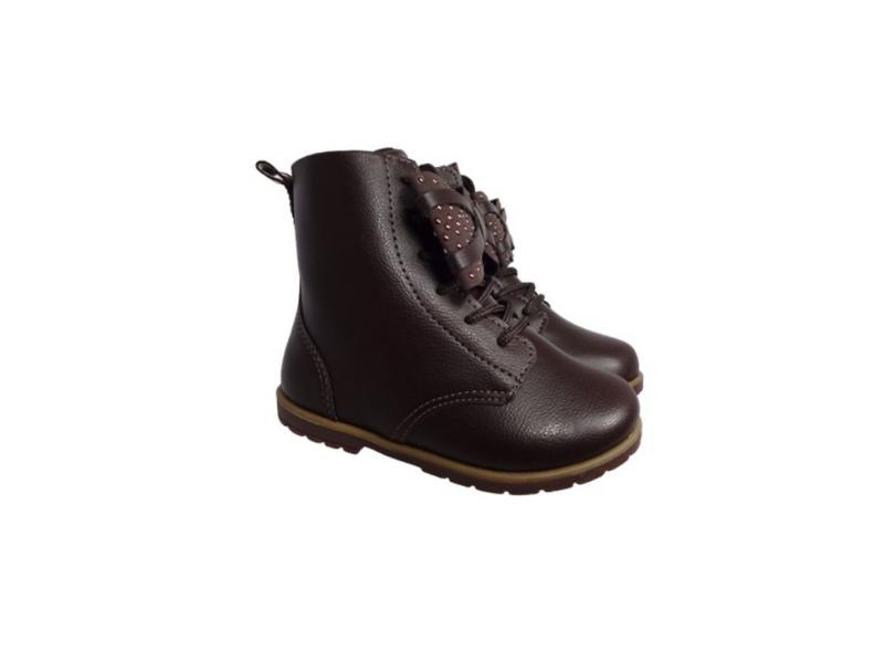 Bota Coturno Infantil Feminina Laço Marrom Pampili