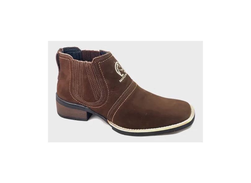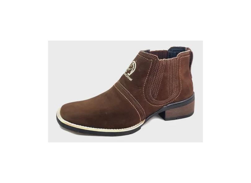 Bota Country Estilo Botina Texana Em Couro Solado Todo Costurado Botinha Forrada Cano Medio Passeio Casual Cidade Roça Fazenda Sitio Campo Cor Marrom Café