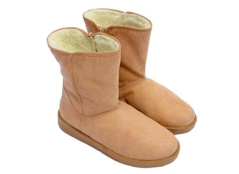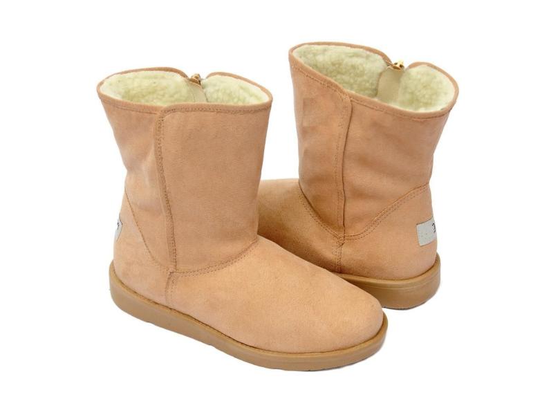 Botinha Australiana Ugg Feminina Camurça Zíper Forrada Pelo Bege