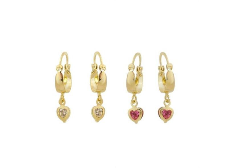 2 Pares Argola Infantil Coração Banhado Ouro 18k Antialérgic