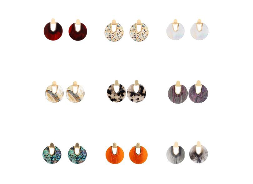 Alloy Shell Pendant brincos feminino Acetato Placa Redonda Abalone Shell Brincos