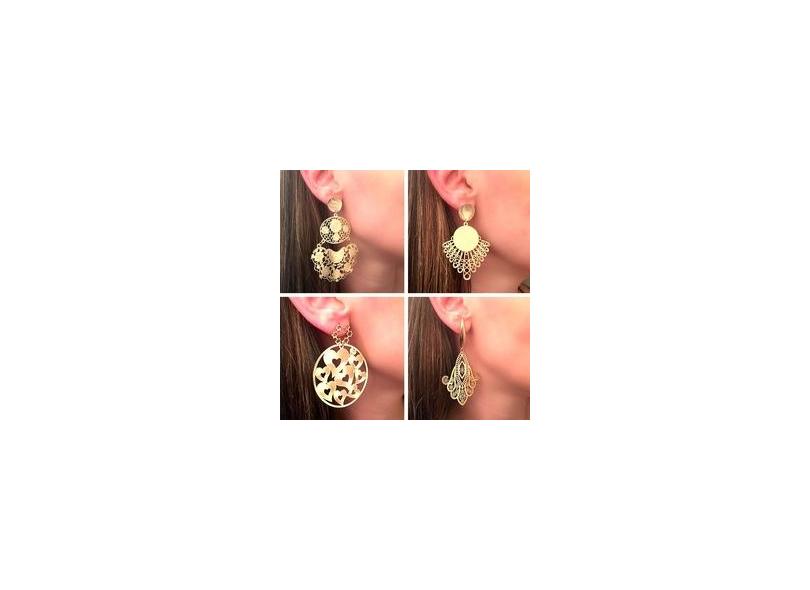 Atacado Kit 10 Brincos Grandes Folheados Ouro 18k