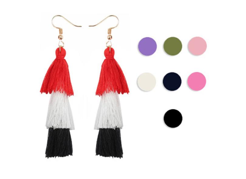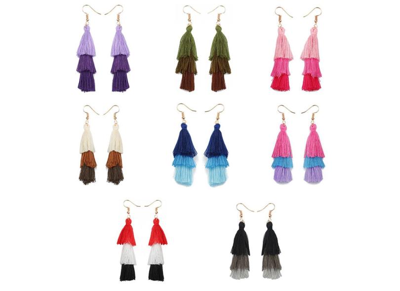 Boemio brincos nacionais gradiente brincos longos borla multicamada