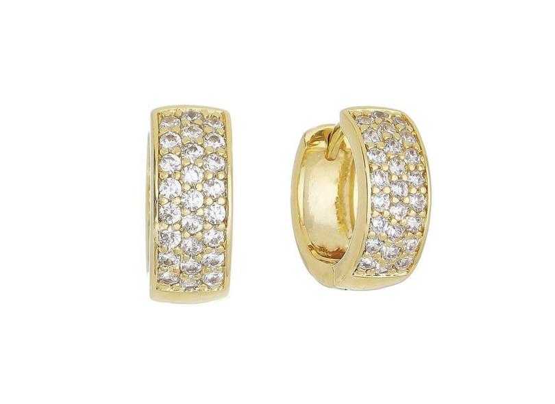 Brinco Argola 3 Filas Cravejado Folheado Em Ouro 18K