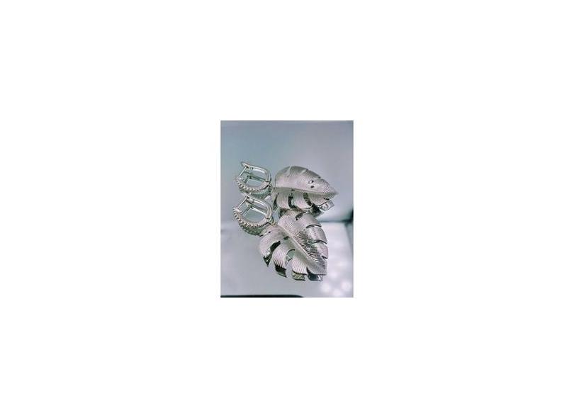 Brinco Argola Banho Ródio Cravejada com Pingente de Folha Lisa